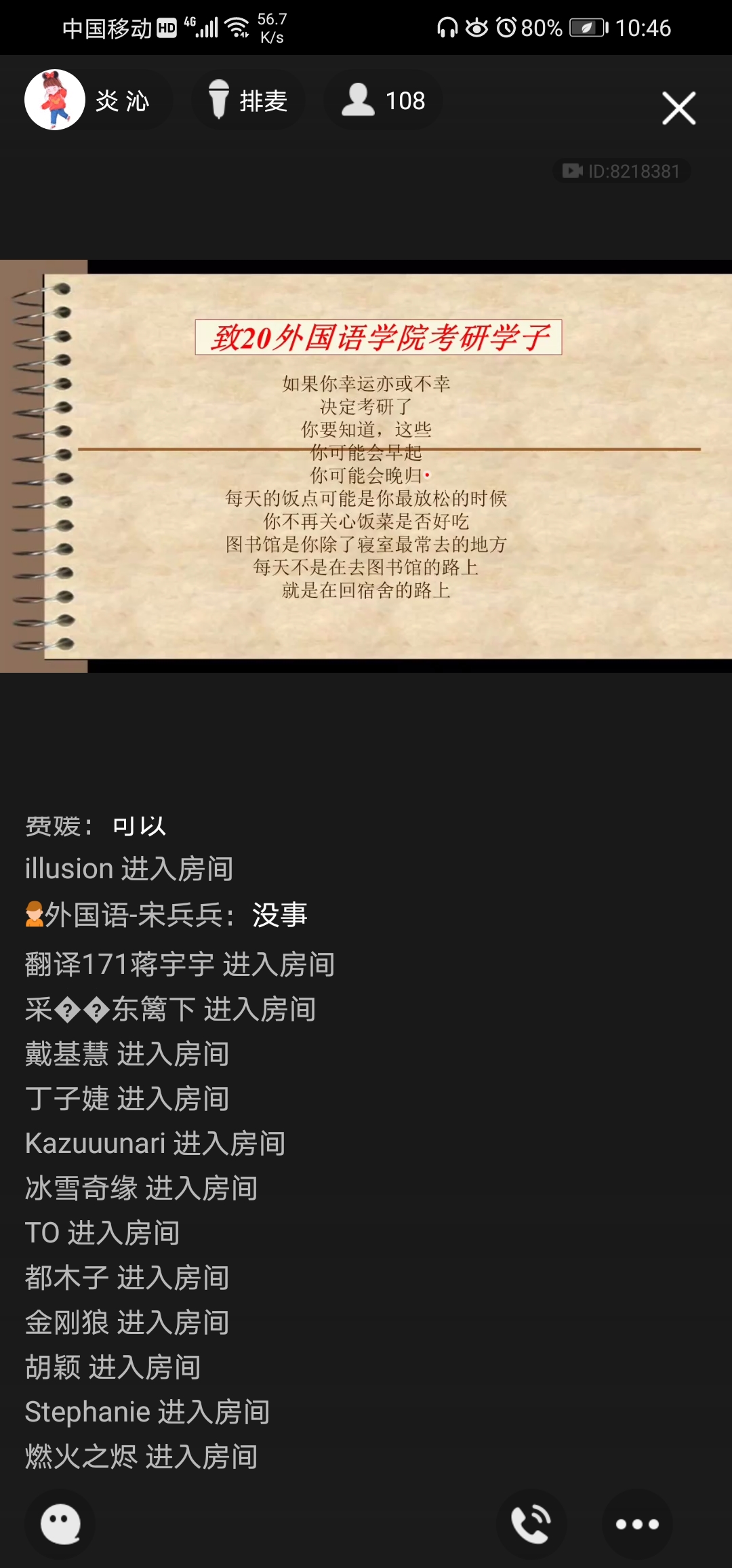 此次线上交流会,不仅干货满满,而且暖人心、增信心。同学们纷纷表示收获颇多。本次考研经验交流会不仅给立志考研的同学指引了正确方向,更切实解决其疑问困惑,进一步坚定学生考研决心、信心、恒心。(特约通讯员:宋兵兵 编辑:汤帅)