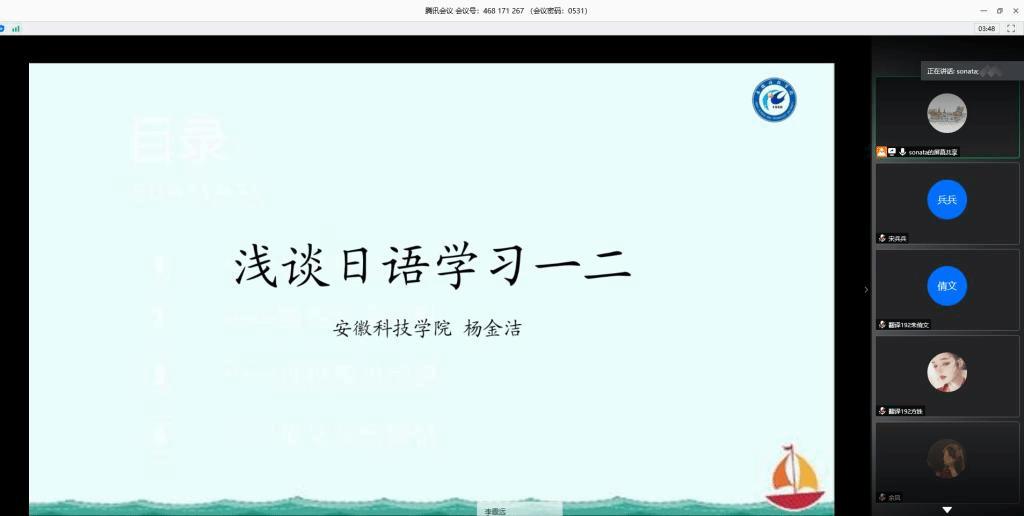 杨金洁作题为 “浅谈日语一二”的讲座,讲座开始,她给同学讲述了关于日语学习的必要性。杨老师说:“一门外语闯天下的时代已经一去不复返了”,这也就强调了在当前社会背景的大形势下,学习一门外语是远远不够的,当今社会需要的是复合型人才。老师给同学们提出了几点建议:一是放开胸怀,开拓视野,吸收外界的信息和知识,加强对外的交流;二是装备自身,提升自己;三是珍惜机会, 善用时间;四是养成终身学习的习惯。杨老师随后从日语和汉字的文字差异分别讲述了中国人学习日语的优势和学习日语的方法。最后杨老师还为同学进行了总结,对于日语学习初级阶段的同学来说,一定要抓好基础,了解文化差异,学会发散思维,动态把握语言的魅力。在听完内容丰富的日本风情讲座之后,同学们都充满热情、积极地进行线上提问,杨老师也很耐心地针对每位同学提出的问题做出解答,使得同学们对于日语学习和日本文化有了更深一步的了解和认识。