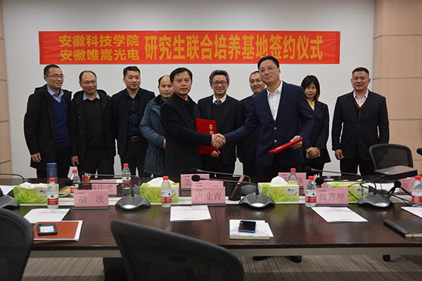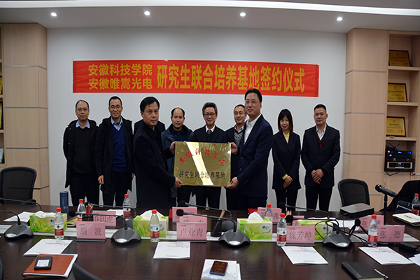 为切实推进产教融合和校企合作,2021年3月15日下午,机械工程学院院长陈丰、党委书记张严政、副院长乔印虎、机械设计制造工程系副教授张立勇、缑瑞宾一行5人,应邀赴安徽唯嵩光电科技有限公司举行共建研究生联合培养基地授牌仪式,受到了唯嵩公司总经理卢业青、销售副总经理胡波、技术经理魏芳坤、财务经理金霞飞和人事经理张德的热情接待,并就推进下一步合作展开充分交流。