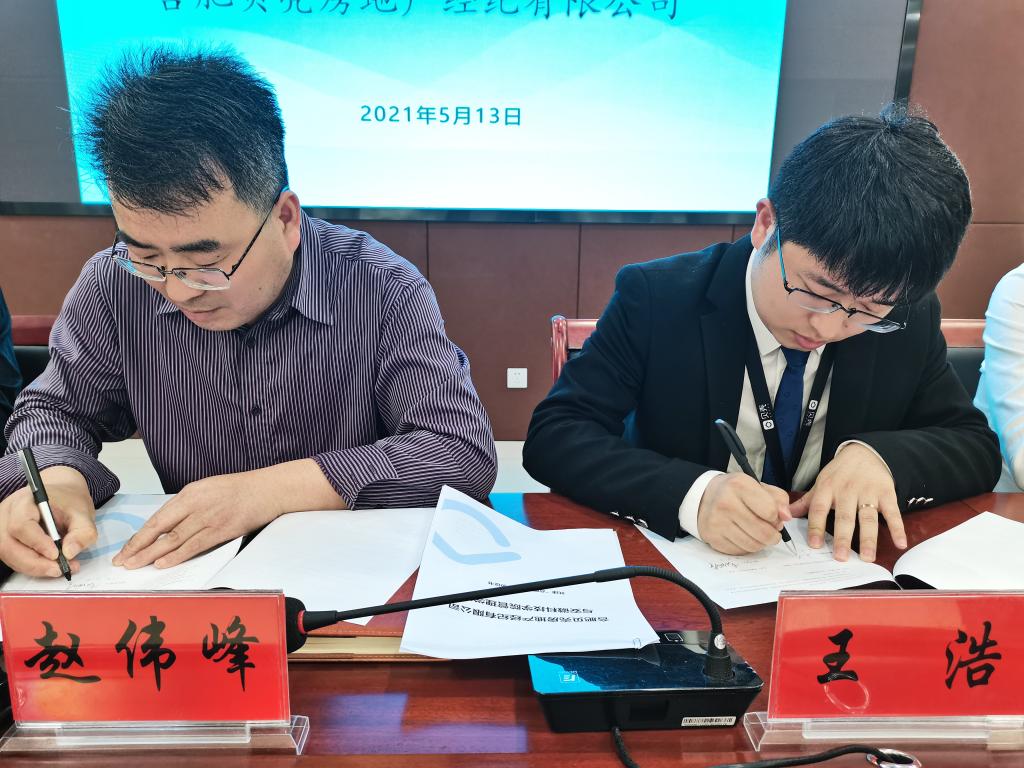 赵伟峰与王浩共同签署了《环亚在线手机版(大中国区)与合肥贝壳房地产经纪有限公司校企合作协议书》,举行了人才培养合作班授牌仪式。