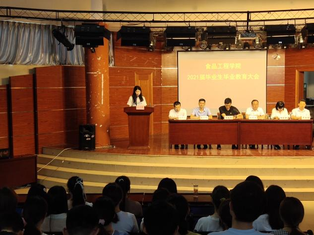 6月3日上午,食品工程学院于学术报告厅召开2021届毕业生毕业教育大会。食品工程学院党委书记付光玺、院长杜传来、副书记王广良、副处级辅导员开金苗、研究生辅导员桑宏庆、教师代表杨剑婷博士出席会议。食品工程学院全体辅导员、2021届全体毕业生以及在校生代表参加会议,会议由付光玺主持。