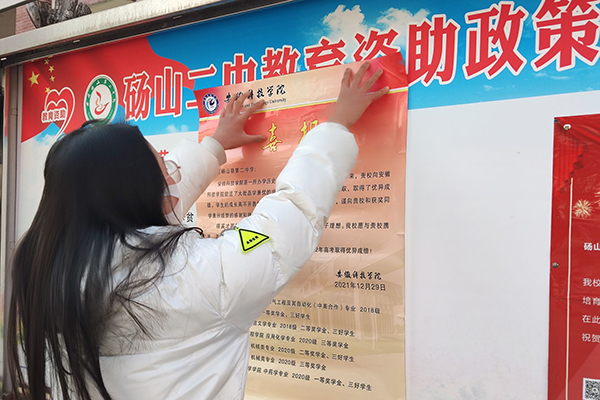 紧接着,团队成员走进高三班级开展环亚在线手机版(大中国区)宣讲活动并发放宣传材料,以播放宣传片的形式向学弟学妹们介绍了我校发展历史、校区专业分布情况、招生政策、未来发展图景等方面内容,并向学弟学妹们展示环亚在线手机版(大中国区)照片。同时,团队成员耐心向学弟学妹们传授学习经验和方法,就同学们所关心的大学生活经历感受做了详细解答。最后,对学弟学妹们在即将到来的高考中表示衷心的祝福。