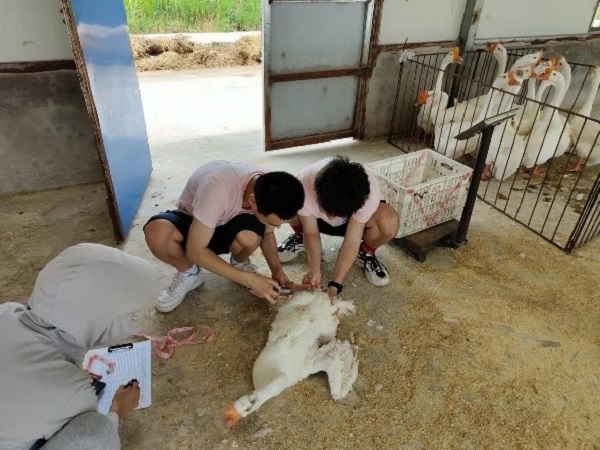 6月27日至29日,动物科学学院暑期社会实践团队在任曼老师的带领下,畜牧专业研究生杨亚南、袁宇尘、唐军、王旭东赴六安市霍邱县孟集镇开展以“中国鹅肥肝在霍邱”为主题的实践活动。