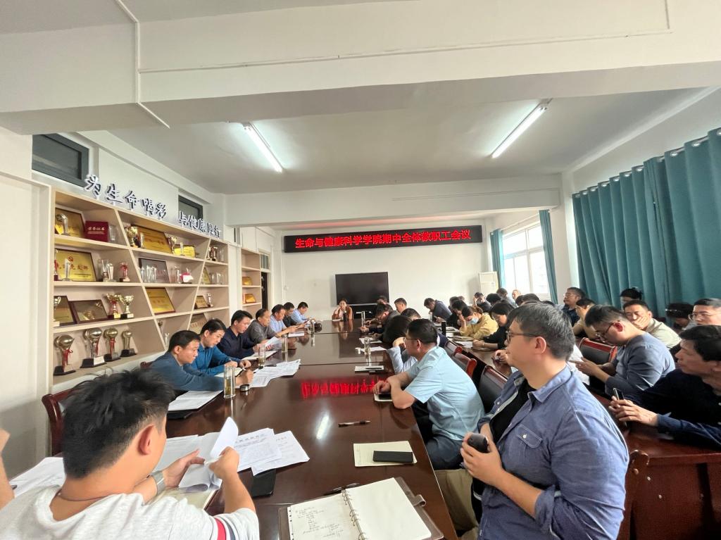 4月19日下午,生命与健康科学学院在学院会议室召开期中全体教职工会议。学院党政领导和全体教职工参加会议,会议由学院党委书记詹学文主持。