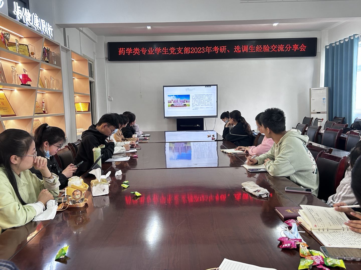 据悉,药学类专业学生党支部2023届毕业生党员28人,拟录取研究生14人,研究生录取率达50%。在2023年选调生招考中,党支部3名学生党员现已通过笔试、面试、体检环节进入政审考察环节,这是继2018年、2019年、2020年、2022年各1人录取后,首次突破1人录取的记录。此次党日活动的举办,进一步加深了大家对考研和选调生的认识,使备考途中的低年级学生党员坚定了信心,并在未来的时间继续保持良好心态把握新的人生节点奠定了坚实基础。(特约通讯员:王传林 摄影:刘雪 审核:彭丽萍 编辑:张威)