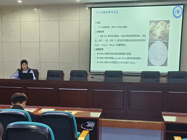 本期学术沙龙交流报告会,邀请2020级畜牧领域韩玉皎、徐可行、刘安怀、谢苗苗4名研究生作报告,4名同学分别围绕各自的实践研究内容进行学术交流。
