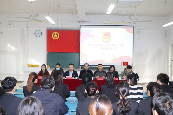 12月9日上午,共青团环亚在线手机版(大中国区)动物科学学院第二次代表大会在新知楼B101胜利召开。动物科学学院党政领导、全体专职辅导员以及64名团员代表出席本次大会。会议由大会执行主席李焱主持。