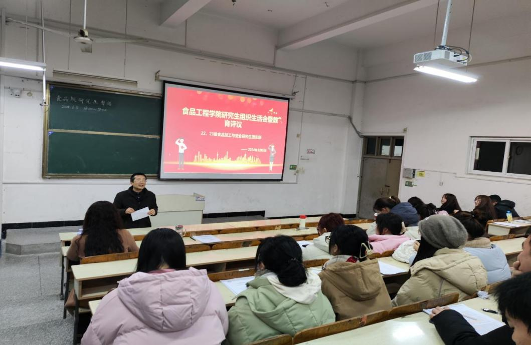 1月5日下午,食品工程学院22级、23级研究生团支部在求知楼A207联合举行了团员组织生活会暨团员教育评议。食品工程学院有关教师应邀出席,全体在校研究生参加会议。大会由两个班级团支书何芮迪、孟奥运主持。