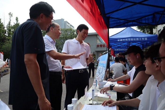 9月1日下午,付光玺带领学院党政办主任赵传磊、研究生秘书彭钢与研究生辅导员李彤彤等一行深入学生宿舍看望新生,亲切慰问刚刚踏入校园的新同学们,细致了解新生的适应情况。走访过程中,付光玺耐心细致地倾听每一位新生的心声,从学习规划到生活琐事,无不尽心解答新生的疑惑与期待。各位老师为新生适应新的学习和生活环境分享了宝贵的经验与建议,鼓励新生们勇于面对未知挑战,坚持梦想、不断前行。这份来自学院的关怀与倾听,让新生们深切感受到了深深的温暖与归属感,也为大家在安科的新征程上努力奋进增添了无限的动力与信心。
