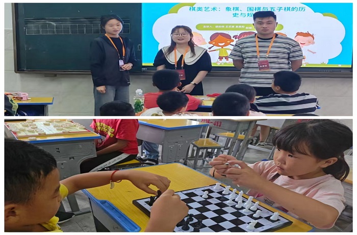 中国的“棋文化”历史悠久,源远流长。我们的棋艺班专门为小学生开设,课程包括象棋、围棋等传统棋艺,通过学习和练习各种棋类游戏,培养孩子们对棋艺的兴趣,帮助孩子们提高专注力、思维能力和逻辑推理能力,使他们逐渐养成良好的行为习惯、生活习惯和科学的思维方法。支教团成员胡欣悦说:“在布置棋局和思考对策中,孩子们逐步学会了用科学的方法看问题、想问题。在对弈中,孩子们热情高涨、积极参与,享受不断成长的过程和乐趣。”