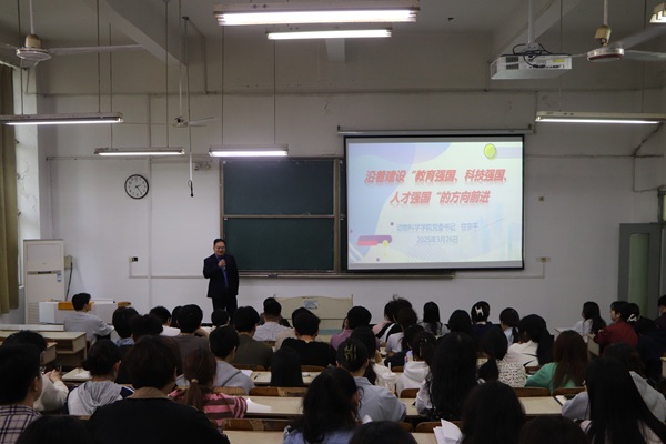 甘宗平为学员作题为《沿着建设教育强国、科技强国、人才强国的方向前进》的主题报告,结合我国在航天探索、人工智能、乡村振兴等领域的突破性成就,用生动的案例和鲜活的数据向同学们展现了新时代中国的发展速度。他表示,青年一代既是科技创新的生力军,也是教育改革的受益者,鼓励同学们珍惜学习机会,夯实专业基础,培养创新思维,将个人成长与国家需求紧密结合。