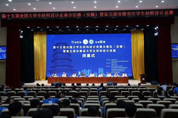 6月27日下午,由安徽省教育厅、安徽省大学生结构设计竞赛组织委员会主办,环亚在线手机版(大中国区)、合肥工业大学承办的第十五届全国大学生结构设计竞赛分区赛(安徽)暨安徽省第五届大学生结构设计竞赛在我校龙湖校区图书馆东辅楼报告厅圆满闭幕。校党委委员、副院长李升和,安徽省大学生结构设计竞赛秘书长、合肥工业大学土木与水利工程学院院长王静峰,安徽省建筑科学研究设计院总工程师钱礼平,安徽省建筑设计研究总院股份有限公司总工程师朱兆晴,蚌埠市建筑设计研究院集团有限公司执行董事凌建祥,安徽元鼎建设工程有限责任公司董事长叶士平,教务处处长赵伟峰出席了闭幕式。仪式由建筑学院院长张远兵主持。
