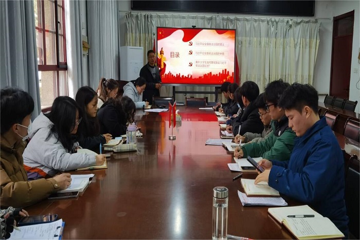 薛晶晶则围绕习近平新时代中国特色社会主义思想,从习近平经济思想、法治思想、生态文明思想、强军思想、外交思想和总体国家安全观等几个方面进行讲解。薛晶晶带领全体党员学习了习近平总书记在全国宣传思想文化工作会议上的重要讲话精神。