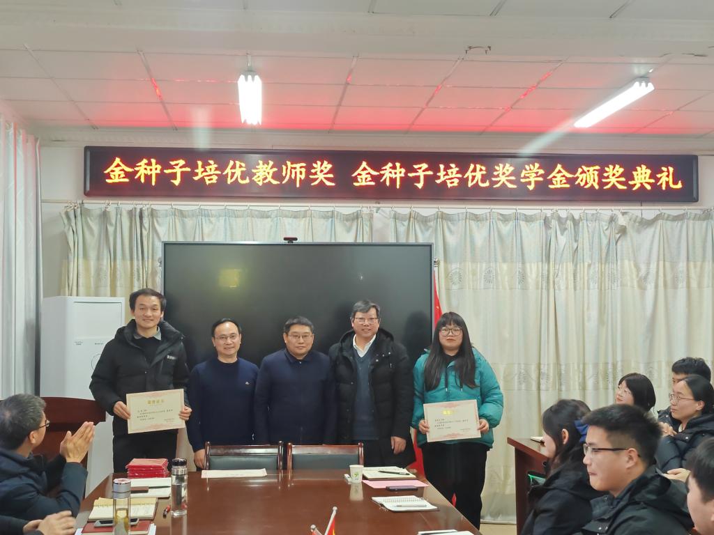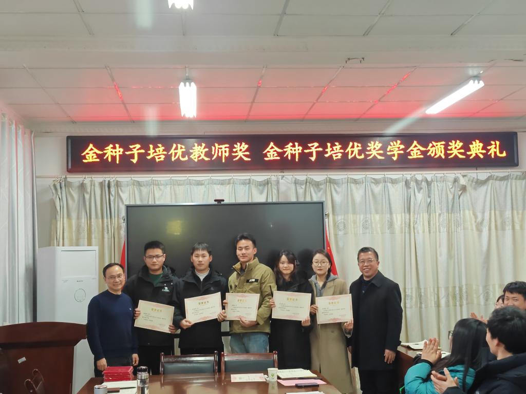 1月11日下午,“金种子培优基金”2023年度“金种子培优奖学金”“金种子培优教师奖”颁奖仪式在农学院会议室隆重举行。学校党委委员、副院长李升和,上海景领投资管理有限公司合伙人、基金发起者黄宪先生,二级教授、基金发起者农学院黄先忠老师,农学院党委书记何世潮,副书记张轶辉,副院长舒英杰和李文阳以及教师代表和学生代表出席颁奖仪式。根据《环亚在线手机版(大中国区)农学院“金种子培优基金”申报细则》和申报人申请,经“金种子培优基金”评审委员会评审,李瑞宁、艾昊两位青年教师荣获金种子培优教师奖,孙张论、李婷、杜孟祥、杨德坤和王静婷五位农艺与种业专业研究生荣获金种子培优奖学金。颁奖仪式由农学院党委副书记、院长崔广荣主持。