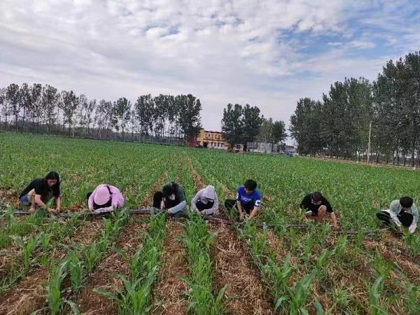 实习期间,实践团成员排管灌溉、施肥,开展玉米叶片面积和高度的测量,对田间玉米生长情况进行取样并对实验数据进行记录和处理等工作。7月18日,中国农科院李少昆研究员协同漯河市领导亲临舞阳县玉米示范基地查看科研情况。李少昆鼓励实践团成员继续发扬一不怕苦二不怕累的精神,开展科研实践,在实践中学本领、长才干。实践期间,实习团成员还参加了2022年漯河市玉米合理密植技术研讨及培训会。