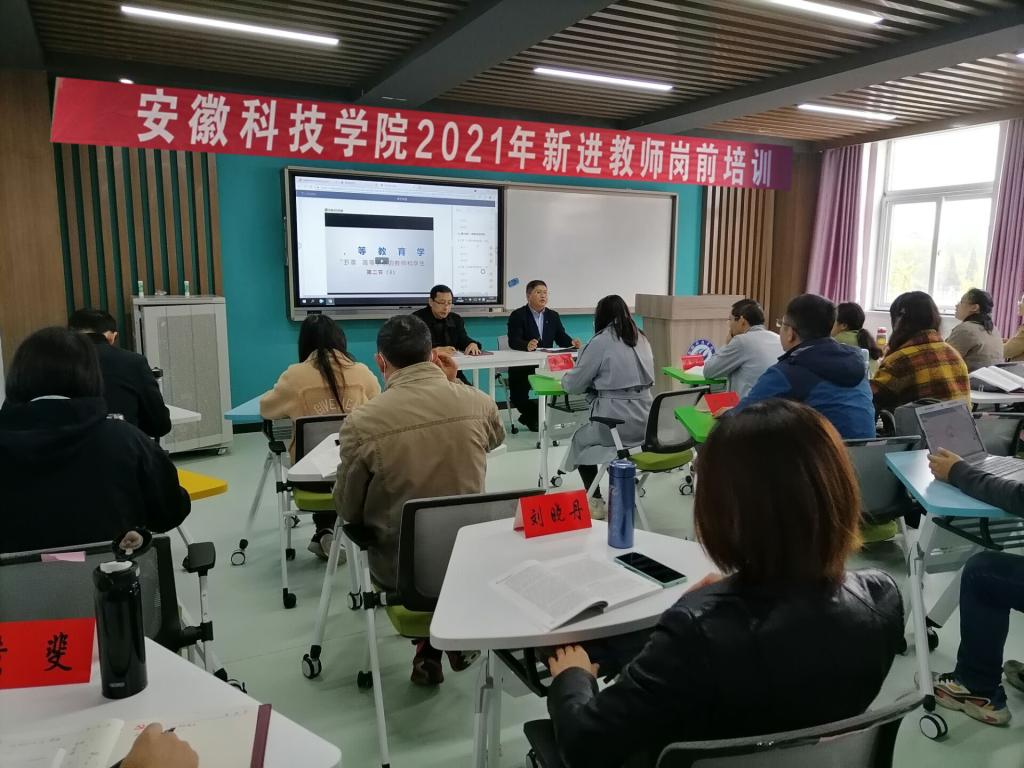 10月20日下午,我校在凤阳校区求知楼B楼309智慧教室开展2021年新进教师岗前集中网络培训活动。党委教师工作部、人事处副处长谢越、师资科才治军及2021年全体新进教师参加此次活动。活动由谢越主持。