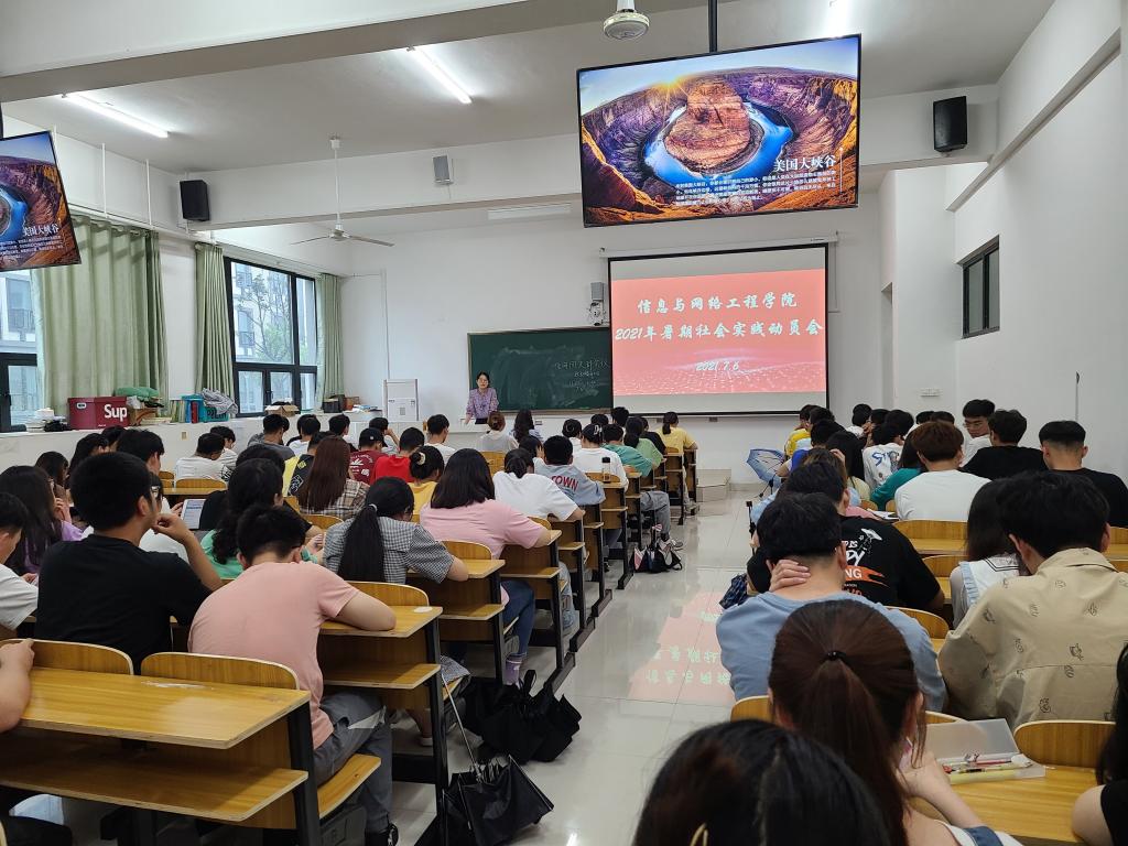 为贯彻落实习近平总书记关于青年工作的重要思想,坚持理论教育与实践养成相结合,教育引导大学生在亲身参与中树立家国情怀、增强实践能力,激励广大青年努力成为担当民族复兴大任的时代新人,7月6日中午,信息与网络工程学院在致知楼B108教室召开2021年暑期“三下乡”社会实践动员大会,会议由学院团委书记汪琦主持,学院团委学生干部、非毕业班团支部书记以及各实践团队成员参加会议。