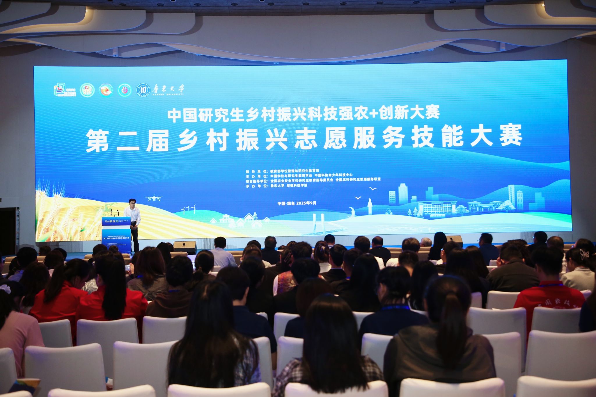 王庆在致辞中表示,鲁东大学作为烟威地区办学最早的高校,始终扎根山东半岛,坚持以富民兴鲁为重要使命,现已发展成为一所工科为主、工农理文多学科协调发展的综合性应用型大学。近年来,学校紧密围绕国家所需、山东所要,扎实践行“响应、更新、融合、服务”的发展理念,系统构建了六大优势学科集群,集中打造出服务新航天、新海工、新交通、新一代信息技术、新水产等十余个特色研究方向,在滨海核电冷源安全创新、海水养殖新品种培育、海上航天装备技术研发等领域形成了一批标志性成果。大赛既是研究生志愿服务与创新技能的竞赛平台,更是向全国兄弟高校对标学习、取经问道的珍贵契机,必将成为推动研究生教育改革发展、加速乡村人才振兴的重要里程碑。大赛于9月21日下午圆满落幕。