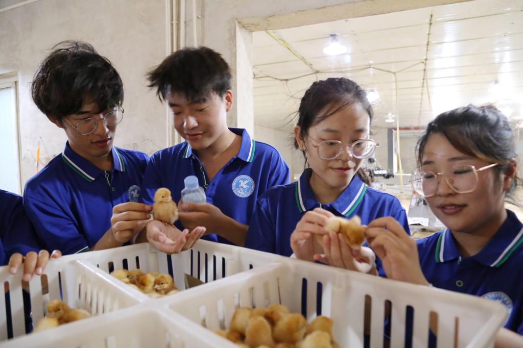 在我们的一日三餐中,鸡蛋扮演着十分重要的角色。志愿服务团队师生来到河北青山种禽有限公司。在孵化车间,学生亲身感受了一枚枚种蛋自动送入该系统,接受特殊光线照射后,过大、过小、破损或发育不好的种蛋被自动分拣出来的过程。师生参观了孵化车间,在专业教师的带领下进行了快慢羽鉴别。养殖场内,只见工人按动传送饲料的按钮,饲料按配比逐一向食槽输送,一枚枚新鲜鸡蛋又通过传送带传送出去……从蛋鸡喂料到产蛋、捡蛋各环节,全部通过自动化生产线完成。与室外高温相比,厂房内的温度湿度更舒适。公司利用粪污发酵制作有机肥,有效降低了污染,壮大畜牧产业链条,进一步提高畜牧粪污综合利用率,构建了畜牧业绿色循环发展体系。