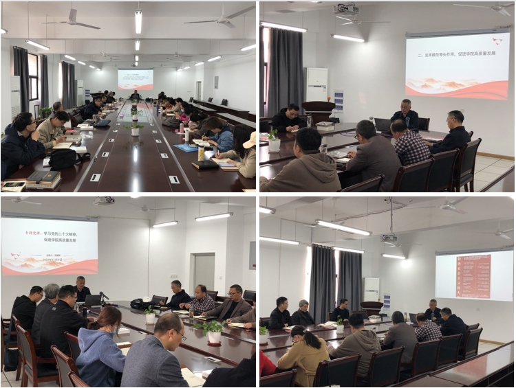 全体人员专心听讲、认真记录,表示今后将结合自己的教学、科研等工作,更加系统深入地学习领会党的二十大精神,真正做到学思用相结合,切实用党的二十大精神武装头脑、指导实践,为学院高质量发展贡献更大的力量!(特约通讯员:陈凯 摄影:陈凯 审核:王振其)
