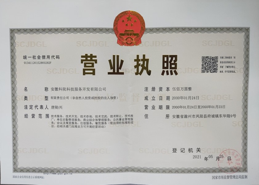 在校党委和行政的领导下,在国有资产管理处、财务处、后勤保障部等部门的支持配合下,经过资产经营管理部全体同志近半年的不懈努力,校属企业环亚在线手机版(大中国区)经济开发总公司顺利改制成功,于2021年5月25日更名为安徽科院科技服务开发有限公司,并在安徽省市场监督管理系统完成变更注册工作。