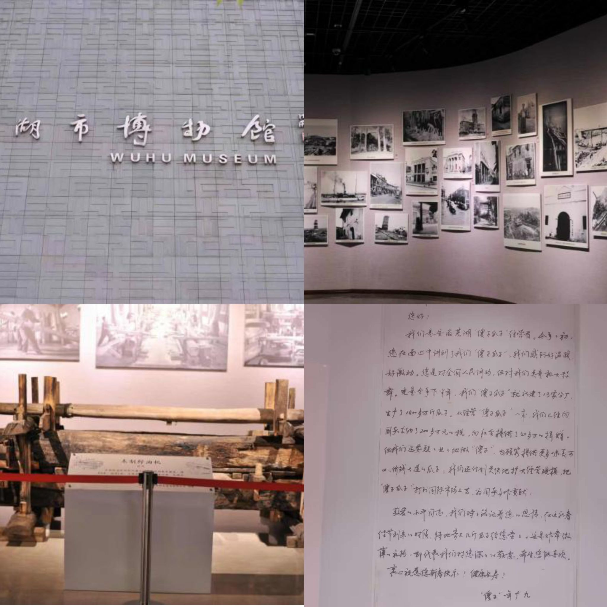 在最后一天的参观学习中,实践队来到了芜湖博物馆,了解芜湖的过去。芜湖。芜湖不仅发展较早,而且有些丰富的文化遗产,例如傻子瓜子精神、芜湖铁画技艺、米市文化等。现在铁画也融入了彩色创新,创新创业的潮流铸造了芜湖现今的产业布局。在博物馆里一件件历史文物中,“傻子瓜子精神”的创始人邓爷爷的一句话话格外醒目:从中我醒悟到,我们需要时刻具备着发扬革命的精神,在不断摸索和碰撞中,开拓属于我们自己的市场。